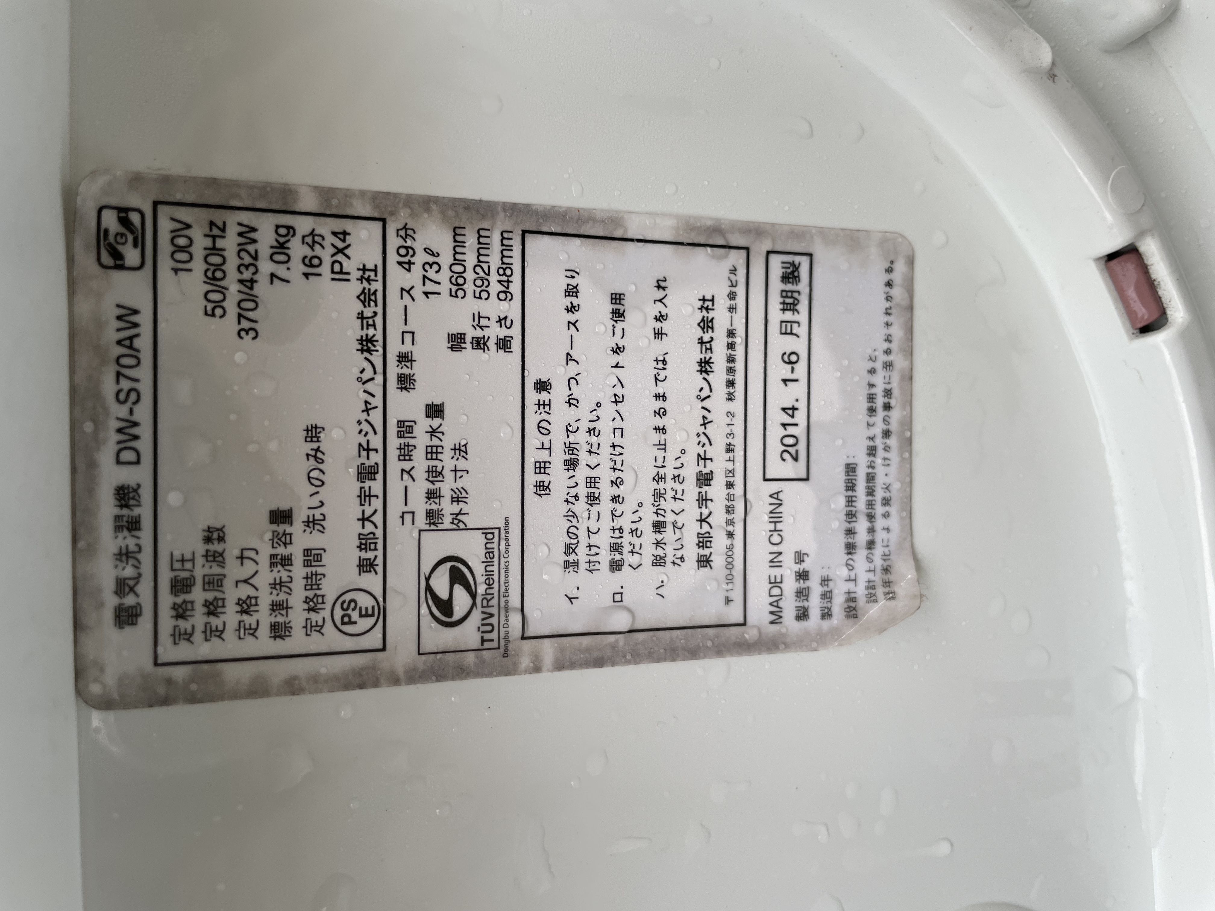 ★良品★大宇電子ジャパン DW-S70AW(W) 14年製 7キロ